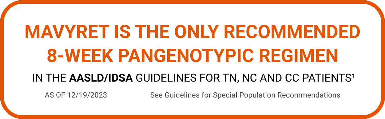 - Postmarketing cases of hepatic decompensation/failure, some fatal, have been reported in patients treated with HCV NS3/4A protease inhibitor–containing regimens, including MAVYRET. The median time to onset for MAVYRET was 27 days. The majority had moderate or severe hepatic impairment prior to initiating therapy, including some with compensated cirrhosis at baseline but with a prior decompensation event. Rare cases were reported in patients without cirrhosis or with compensated cirrhosis; many of these patients had evidence of portal hypertension. In patients with compensated cirrhosis or evidence of advanced liver disease, perform hepatic laboratory testing as clinically indicated; and monitor for signs and symptoms of hepatic decompensation, such as the presence of jaundice, ascites, hepatic encephalopathy, and variceal hemorrhage. Discontinue MAVYRET in patients who develop evidence of hepatic decompensation/failure.